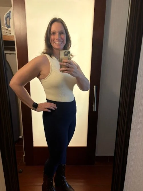 “I was struggling with my weight for years and hit my breaking point January 2024 when I was at 209lbs. I was sick with myself and ready to just give up. My turning point came when, one night, I was searching for workout classes near me. I tried the YMCA, went a few times but it became too much because it was 25 minutes away. Who wants to drive that far after work?! Then I found Body Temple VA. Could not believe there was a place for women right in Amelia. I started circuit classes in February 2024 and Personal Training classes in March 2024. My 1st weigh in with Cheryl I was 204lbs. It wasn't easy since I had low to no energy- but having Cheryl and a class of amazing ladies to stay committed to for several workouts each week, I started to see progress! Did I hit some road bump?? Of course I did, especially over the holidays, but Cheryl was there with me- every step of the way. Cheryl provides an encouraging atmosphere and provides the drive, patience, support and understanding. Over the course of a 14 months, I went from 209lbs to 156lbs. Being 43, I never thought I would lose the weight. Not only do I have an amazing Personal Trainer but also met and gained several amazing women who are genuinely supportive and my friends. I am thrilled to continue my journey to reach my goal weight of 140lbs and staying strong as I get older. Last weekend I went to a Brooks and Dunn concert and dressed a little out of my comfort zone- but I actually felt great and looked great! It’s been a long time since I could genuinely say that about myself. Cheryl, there are not enough words to say how thankful and lucky I am to have you and Body Temple in my life.”